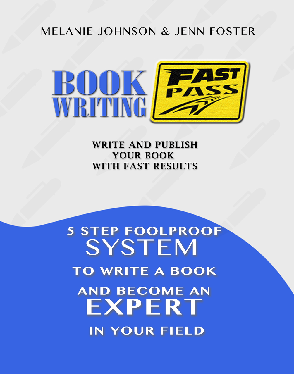 The book writing fast pass workbook will give you the 5 Step Foolproof System to Write a Book and Become an Expert in Your Field . Jenn Foster and Melanie Johnson are publishing experts and book writing gurus. They walk you through what it takes to become a #1 Best Selling Author. Whether it's your first book, or you are a seasoned writer Jenn and Melanie are there to do the heavy lifting for you. If you're a business owner, entrepreneur, professional athlete or you’ve wanted to write a book but never dreamed it would happen for you, Jenn and Melanie are the go-to gals. This workbook goes with the Book Writing Fast Pass Online Training Course. Look for it at www.BookWritingFastPass.com